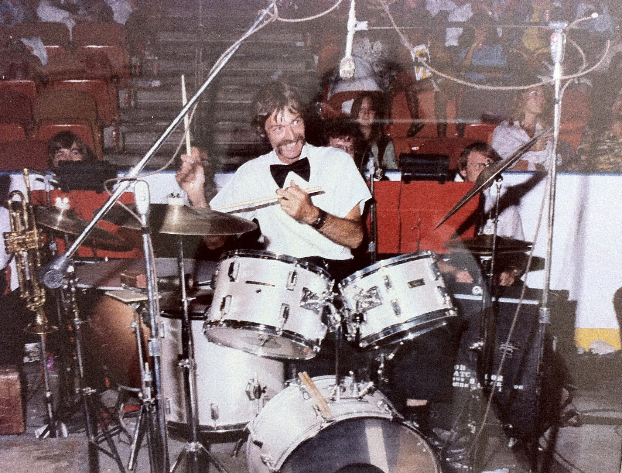 When we arrived at his drum kit, he tossed his jacket on the floor, and sat down with perfect posture, sticks up. ย I ran off to the side, and he mouthed, “I love you love you love you,” and blew me a kiss like always.