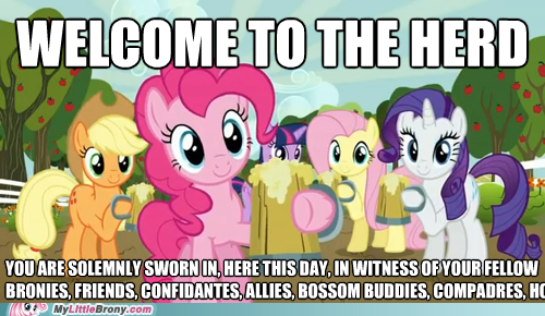So what I learned from this little research project is Bronies are crafty dudes who hang out in the basement smoking pot and watching porn, and no one suspects a thing because they’re members of the sweetest cult ever invented. They’ve also taken the show writers hostage to insure they continue to produce the show, which explains the obvious decline in pony names. They’ve even created on-line chatrooms and communities like: Equestria Daily and Ponychan to corroborate their stories.