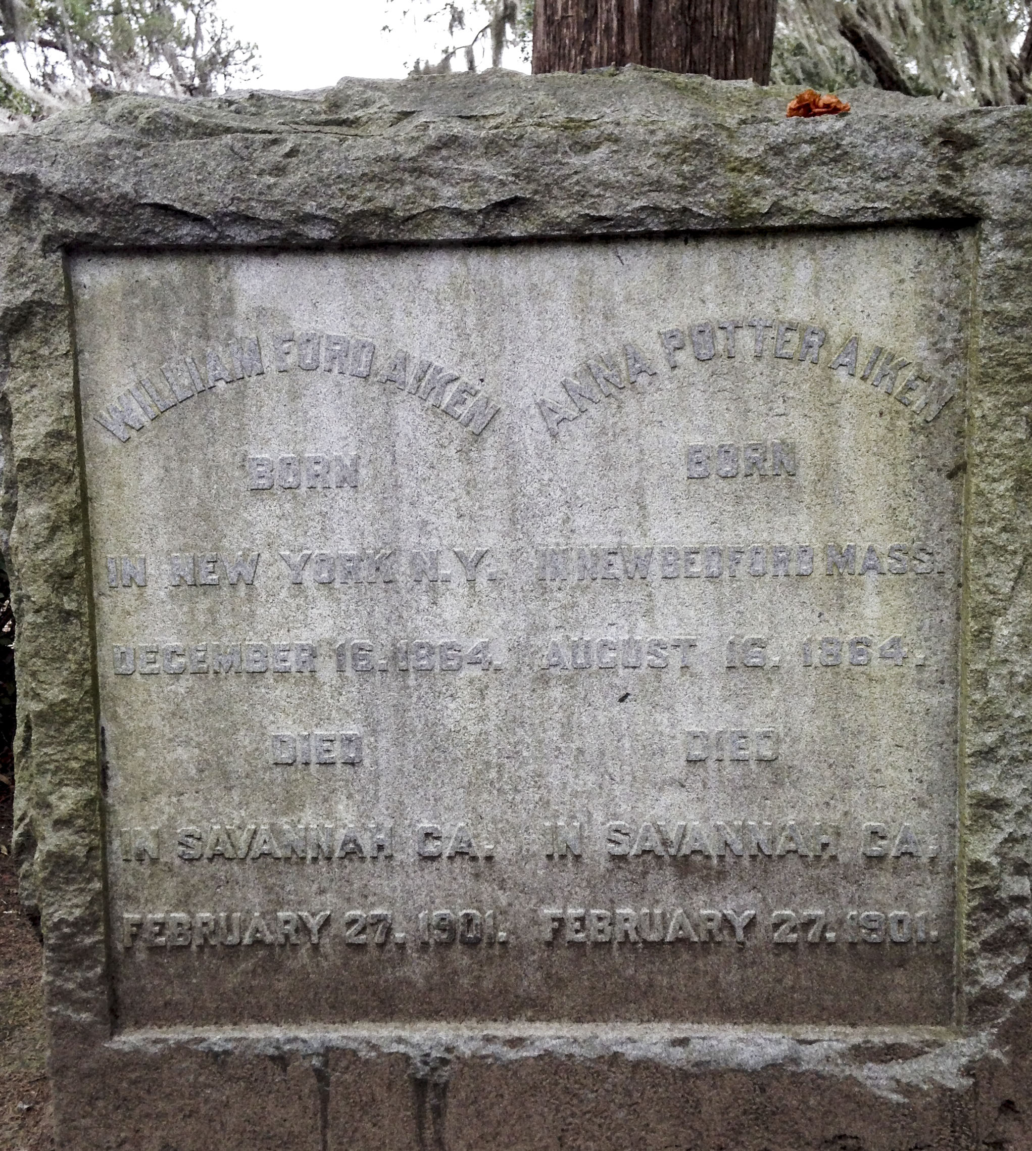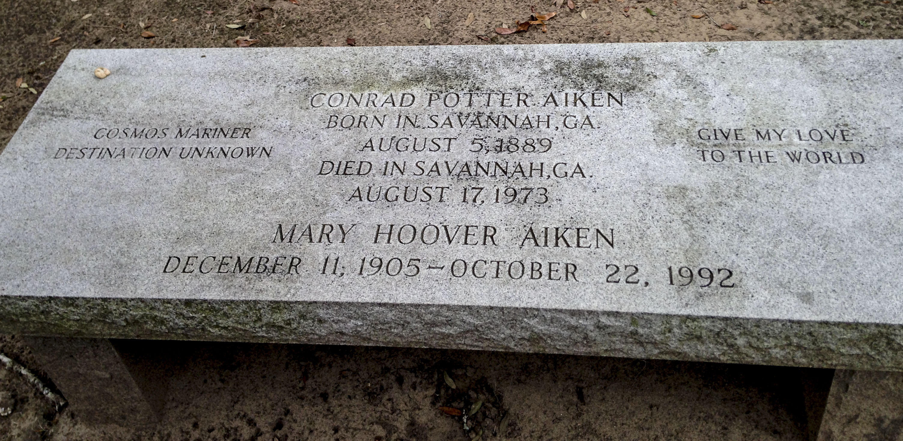 I used to hate Spanish moss because of that night I broke my toe on a drug run when I was nine but now I find it very pretty. Enchanting even. Particularly, when it’s over the bench that is Mr. Aiken’s tombstone.