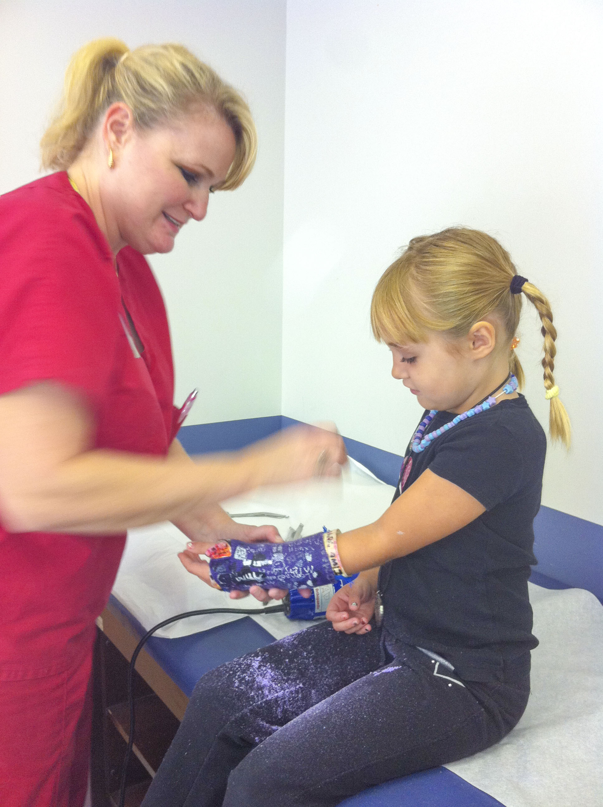 As good fortune would have it, Anna had broken her wrist on the swings at school three weeks earlier. ย She had an appointment the following week to have her cast removed.
